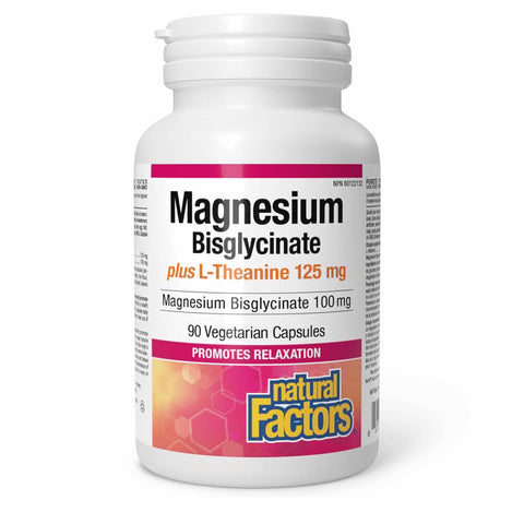 Natural Factors Magnesium Bisglycinate 40mg Plus L-Theanine 250mg 90 Vegetarian Capsules
