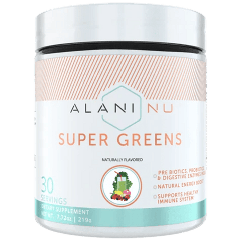 Alani Nu Super Greens are packed with prebiotics, probiotics, and digestive enzymes, our Super Greens supplement is packed with good-for-you greens like wheatgrass, barley grass, and spirulina to help you restore your pH balance, promote natural energy, and support a healthy immune system.*
