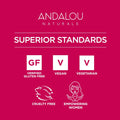A: At Andalou, their commitment to creating true beauty through pure ingredients, innovative formulas, eco-friendly practices, and cruelty free standards guides them in all they do.