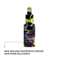 Lavandula angustifolia (Lavender) Water*, Vitis vinifera (Vinanza® Grape) Seed Extract, Ribes nigrum (Blackcurrant) Seed Extract, Rubus ursinus (Boysenberry) Seed Extract, Actinidia deliciosa (Vinanza® Kiwi) Fruit Extract, Galactorabinan, Dehydroacetic Acid, Benzyl Alcohol, Guar Gum*, Xanthan Gum, Sodium Hydroxide, Euterpe oleracea (Acai) Berry Oil*, Caprylyl/Capryl Glucoside, Tocopherol (Vitamin E), Helianthus annuus (Sunflower) Seed Oil, Green Coffee Arabica (Coffee Cherry) Seed Extract. Fragrance of Boysenberry & Blackcurrant: Citronellol, Limonene, Geraniol, Linalool. *Certified organic by BioGro