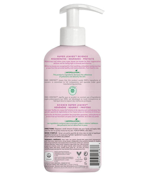 Attitude Super Leaves Soothing Body Lotion contains white tea leaves that have many virtuous properties for your health and your skin. They are packed with antioxidants to help protect your skin from free radical damage.*