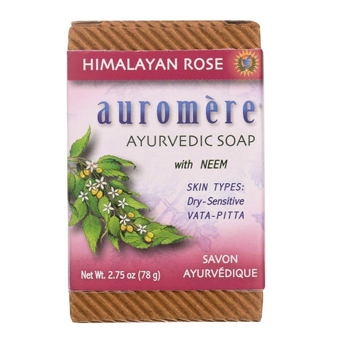 Auromere Ayurvedic Bar Soap Himalayan Rose With Neem Dry to Sensitive Skin 78g