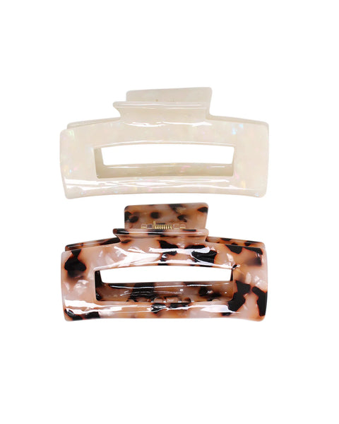 BANDED Rectangle Hair Clips: Strong, Eco-Chic Hold! Secure thick, curly, or long hair with these large, open rectangle clips. Crafted from biodegradable cellulose acetate, enjoy all-day hold and unique style. 2 pack, 3.75" x 1.75" of durable, flexible beauty!