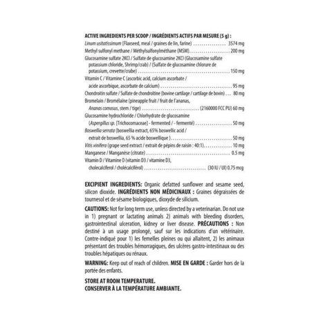 Supplying 200 mg of MSM, 200 mg of glucosamine complex (sulfate, hydrochloride) and 80 mg of chondroitin per 5 g scoop (used for each 20 lb of animal’s body weight), BioJOINT contains a blend of powerful antioxidants, vitamins and herbs that facilitate a healthy inflammatory response and support healthy joint function.*