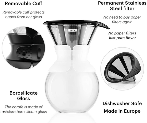 Bodum Pour Over Coffee Maker with Permanent Stainless Steel Filter - Black 1.0L, 34oz