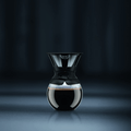 Place your pour-over on a flat, heatproof, non-slip surface. Add fresh, filtered ground coffee to the cone – we recommend one rounded teaspoon or one Bodum scoop for each cup/4oz water. Slowly pour hot (not boiling) water in a circular motion over the coffee grounds until they’re evenly saturated. Then, pour additional hot water up to maximum capacity. Allow water to pass through the coffee into the borosilicate glass carafe (this takes around four minutes). Remove the filter, insert the plastic lid, and pour a cup of joe.