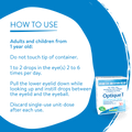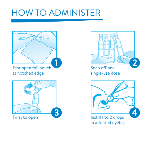 Adults and Children from 1 Year Old: Do not touch tip of container. 1 to 2 drops in the eye(s), 2 to 6 times per day. Pull the lower eyelid down while looking up and instill drops between the eyelid and the eyeball.