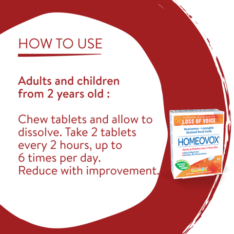 - Adults and children from 12 years old: Take 2 tablets every 2 hours, up to 6 times a day. Reduce frequency with improvement.