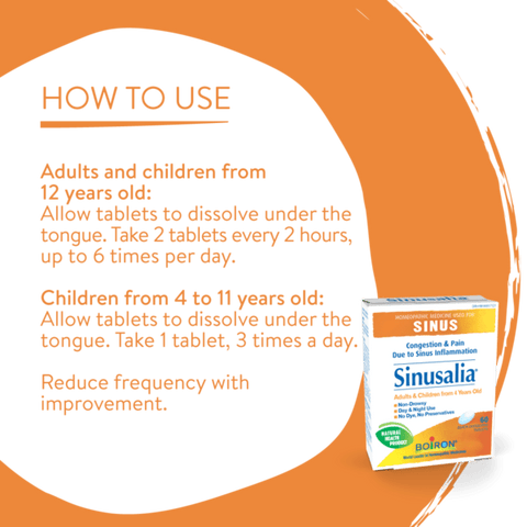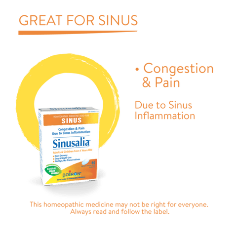 Sinusalia is a Homeopathic medicine, used for the relief of congestion and pain due to sinus inflammation. Sinusalia relieves congestion and pain due to sinus inflammation in adults and children 4 years of age and older.* At the first signs of sinusitis (stuffy nose, and facial pain and pressure), reach for Sinusalia.*