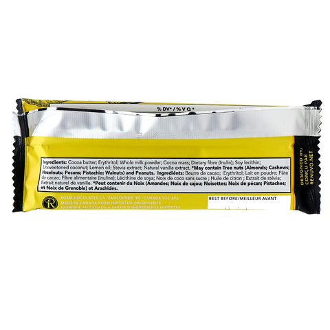 Peanut Butter: Organic dark chocolate (organic cocoa mass, organic cane sugar, organic cocoa butter, organic soy lecithin, organic vanilla extract), Organic peanut butter (organic peanuts, organic palm oil, organic coconut butter, organic evaporated cane sugar, organic peanut flour, sea salt, organic MCT powder, organic coconut oil, organic sunflower lecithin), Organic hemp powder.