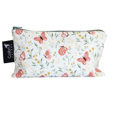 Medium snack bags hold 2 cups - think yummy flatbread, fresh veggies, or a couple of handfuls of chips. These bags are also great for art supplies, toiletries, and keeping your cosmetics organized! Size: 5" x 8"