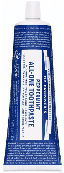 Dr. Bronner's All-One Peppermint Toothpaste has a bold peppermint flavor from the organic peppermint oil and the organic menthol crystals that stimulates mouth and gums with a cool, crisp sensation. Dr. Bronner's simple and effective formula is made with 70% organic ingredients you know and trust. Fluoride & SLS-free, Dr. Bronner's low-foaming toothpaste uses organic menthol crystals to freshen breath naturally. Organic coconut flour & fair trade organic coconut oil helps to gently remove plaque and whiten teeth, while organic aloe helps soothe gums. Vegan & cruelty-free, with no artificial colors or flavors, carrageenan, preservatives, synthetic sweeteners or detergent foaming agents—none!*