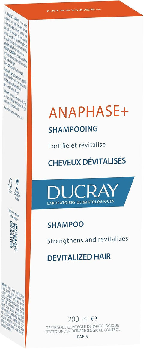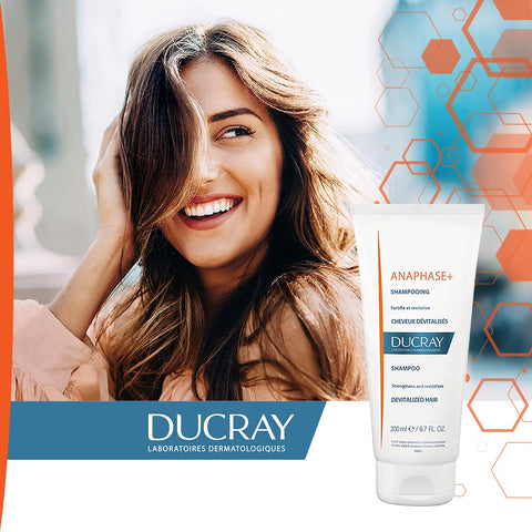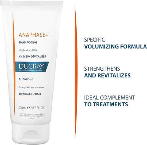 Ducray Anaphase+ Shampoo: Revitalize Thinning Hair & Combat Hair Loss. Fortify and revitalize your hair with Ducray Anaphase+ Shampoo. This anti-hair loss shampoo, enriched with essential vitamins, strengthens hair fibres, enhances treatment effectiveness, and adds volume. It is ideal for thinning, devitalized hair and those experiencing hair loss.