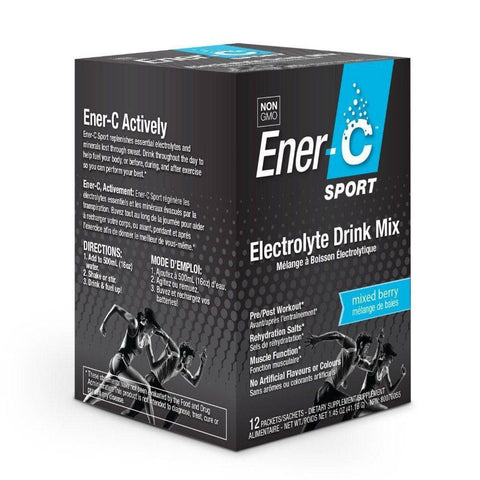 Ener-C Sport Electrolyte Drink Mix. Perfect for before, during and after exercise to support muscle function and re-hydration.* Each packet contains less than 1g of sugar; all you need to get maximum absorption of all these essential electrolytes!*