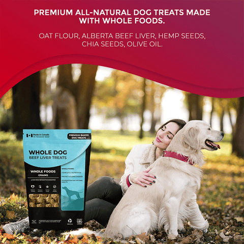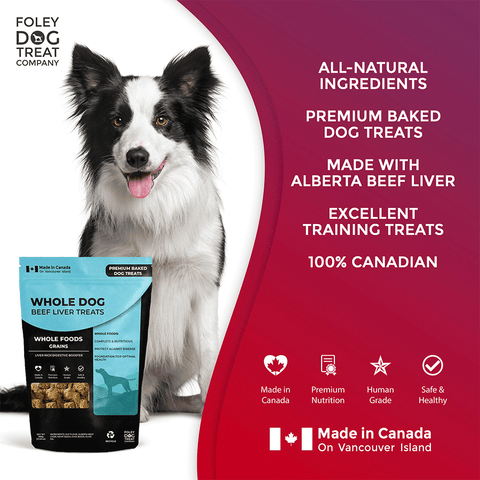 Nourish your dog's inner health with Foley's Whole Dog Beef Liver Treats! Packed with the goodness of Alberta beef liver and whole grains, these treats support digestion, joint health, and overall well-being. Hemp and chia seeds delivers essential omega-3 fatty acids for shiny coats and brain health. Gluten-free and wheat-free, they're perfect for sensitive stomachs. Enjoy the delicious taste and crunchy texture that your dog will love.