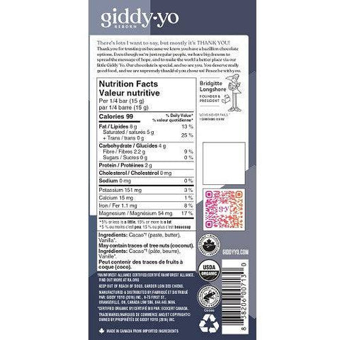 Sugar, cocoa mass, UHT pasteurized cream (cream, milk, skim milk powder, carrageenan, mono and diglycerides, cellulose gum, polysorbate 80, sodium citrate), whole milk powder, cocoa butter, glucose, butter, natural vanilla.
