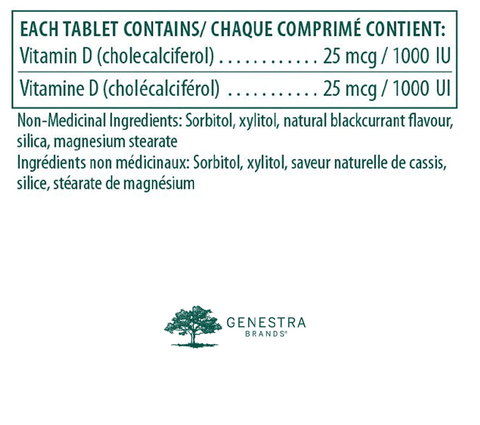 Genestra Brands D3 1000 Chewable Vitamin Supplement Natural Black Currant Flavor 120 Chewable Tablets