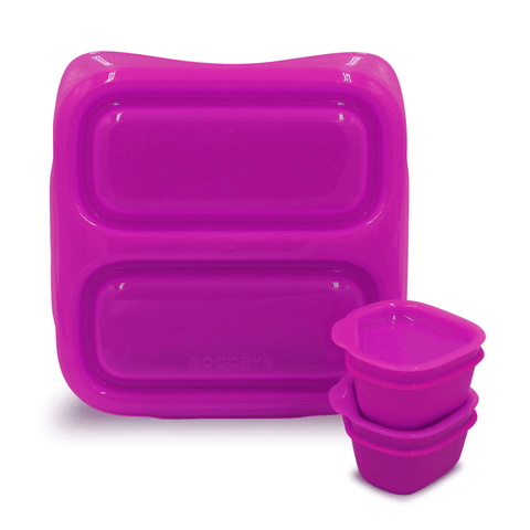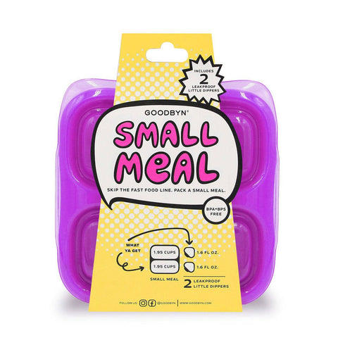 The new Goodbyn Small Meal container has 50% more volume than before with a rounded lid (fits crackers and cookies).* It also features an improved lid that stays shut but is still easy for little hands to open.* The Goodbyn Small Meal container is designed with two compartments to keep your food separate while you're on-the-go. Pack small sandwiches and fruits and keep the soggy out of the sandwich! The Goodbyn Small Meal container helps to eliminate the need for wasteful, one-time-use baggies while also saving money.*