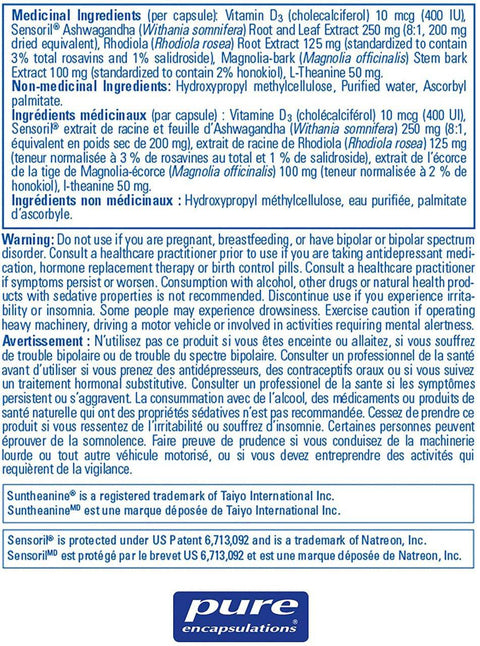 Made with organic cane alcohol, distilled water and Ashwagandha, (Withania somnifera)..................1:4, QCE 250mg