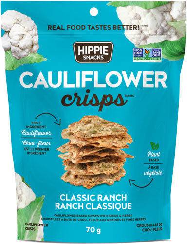 Hippie Snacks Cauliflower Crisps - Classic Ranch 70 g are real, crispy and delicious snack. These are seasoned with sea salt, seeds and herbs that give you all the Classic Ranch and roasted cauliflower flavour you crave, with the crunch you deserve!