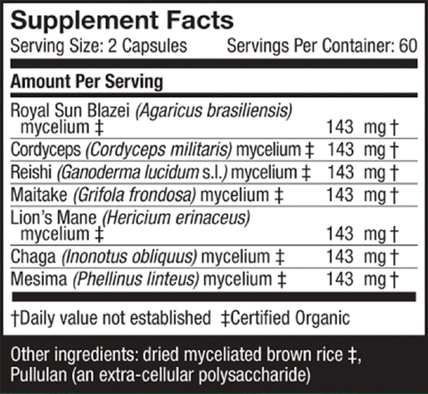 Paul Stamets designed this blend of seven mushroom species (Royal Sun Blazei, Cordyceps, Reishi, Maitake, Lion’s Mane, Chaga and Mesima) to support general immunity.* Many use Stamets 7® as a functional food multiple for maintaining peak performance and health.*