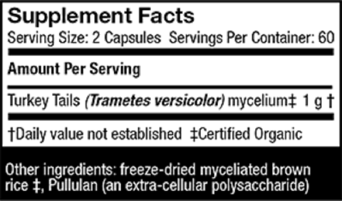 Host Defense® Turkey Tail Capsules use activated, freeze-dried, Certified Organic mushroom mycelium, with a full spectrum of constituents: polysaccharides (beta glucans, arabinoxylane, fucose, glucose, xylose, galactose and mannose), glycoproteins, ergosterols, triterpenoids and other myco-nutrients, which are essential for Supporting Natural Immunity* and the natural microbiome.