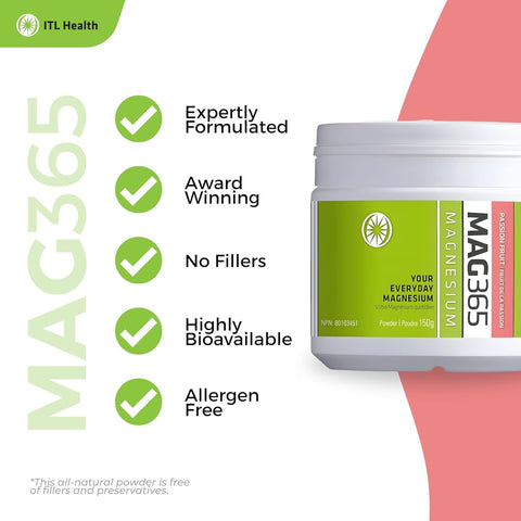 Looking for a delicious way to boost your magnesium levels? ITL Health MAG365 Magnesium Passion Fruit is your go-to daily magnesium supplement that makes wellness feel easy. This award-winning, passion fruit-flavoured ionic magnesium citrate powder is loved for its smooth taste, fast absorption, and powerful benefits. This natural magnesium formula could be your new secret weapon if you're feeling stressed, dealing with poor sleep, or battling brain fog.