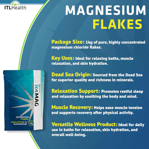 Dive into the soothing embrace of ITL Health SeaMAG Magnesium Chloride Flakes, your ticket to unlocking the restorative power of the Dead Sea. These 100% pure and natural magnesium chloride flakes are designed to melt away stress and muscle tension, offering a simple yet profound way to enhance your daily wellness. Are you ready to transform your bath into a personal spa?
