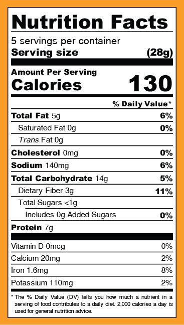 IWONTM Organic Protein Blend (Green Peas,* Brown Rice Flour*, Navy Beans*, Brown Rice Protein*), Sunflower Oil* and/or Safflower Oil* and Mesquite Barbeque Seasoning* (Raw Cane Sugar*, Rice Flour*, Sea Salt, Tomato Powder*, Yeast Extract*, Onion Powder*, Paprika*, Cayenne Pepper*, Natural Smoke Flavor, Citric Acid, Oleoresin Paprika).