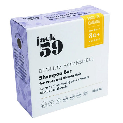 Looking for a way to keep your blonde hair looking its best? The Jack59 Blonde Bombshell Toning Shampoo Bar is a purple shampoo that helps to neutralize brassiness and yellow tones in blonde, silver, and gray hair. It's also packed with nourishing ingredients like argan oil and rice protein to keep your hair hydrated and healthy.