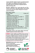 Consult a health care practitioner prior to use if you have fever, vomiting, bloody diarrhea or severe abdominal pain. If symptoms of digestive upset (e.g. diarrhea) occur, worsen, or persist beyond 3 days, discontinue use and consult a health care practitioner. Do not use this product if you have an immune-compromised condition (e.g. AIDS, lymphoma, patients undergoing long-term corticosteroid treatment).