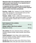 Magnesium helps in the development of bones and teeth and supports proper muscle function. It is an important factor in the maintenance of overall health.