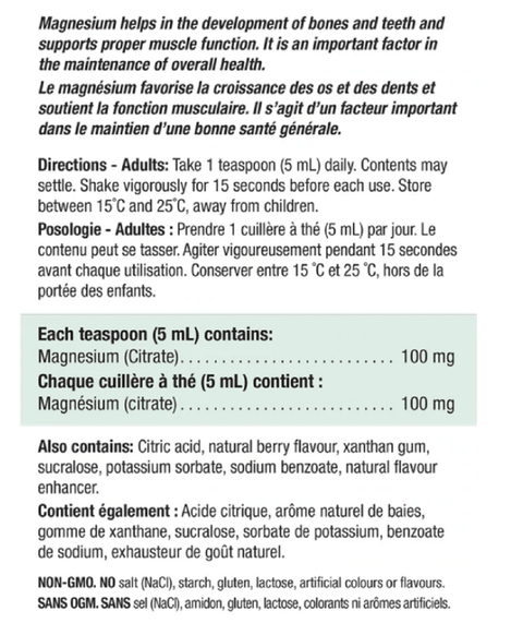 Jamieson Magnesium Citrate 100mg Berry Burst 200mL (DISCONTINUED)