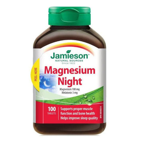 Jamieson Magnesium Night delivers 100 mg of magnesium and 3 mg of melatonin.