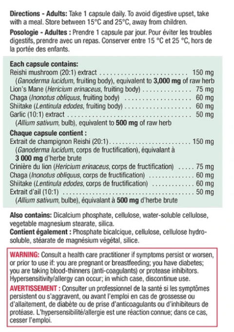 Mushrooms have been used as part of traditional medicine for thousands of years. Jamieson Mushroom Complex is a blend of Reishi, Lion's Mane, Shiitake and Chaga mushrooms, formulated with Garlic to provide a range of benefits, from supporting the body's immunity to increasing energy.