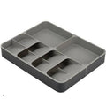The unique design of this highly practical storage solution features five overlapping compartments for storing cutlery and two deep-sided compartments for holding gadgets so you can easily organise messy cutlery and utensil drawers.