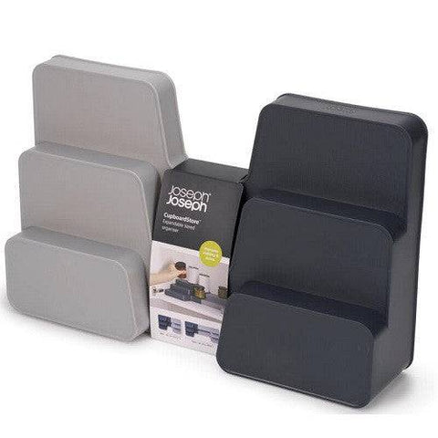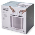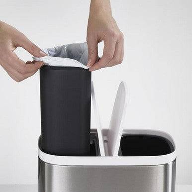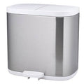 Waste and Recycling Bin, 10.5 x 7 x 11" H / 27 x 18 x 28.5cm H, fingerprint-proof stainless steel. A compact bin with dual compartments for easily separating waste and recycling. Removable inner buckets for easy emptying. Liner retaining holes to keep plastic liners in place. Soft-close lids. Capacity: 2 x 3 liters.
