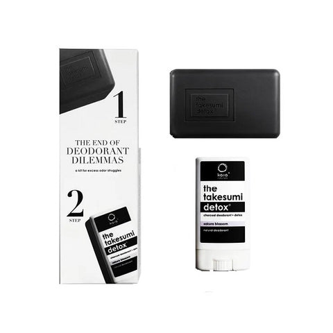 The charcoal deodorant is Step 2 of the Takesumi detox system for excess odour and sweat protection: