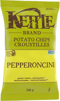 Craving a chip with a kick? Look no further than Kettle Brand Pepperoncini Chips! These boldly flavoured chips are a flavour adventure waiting to happen. Made with thick-cut, whole potatoes for a satisfying crunch, each bite explodes with the fiery heat of real pepperoncini peppers, perfectly balanced by a tangy vinegar kick and a touch of sweetness.