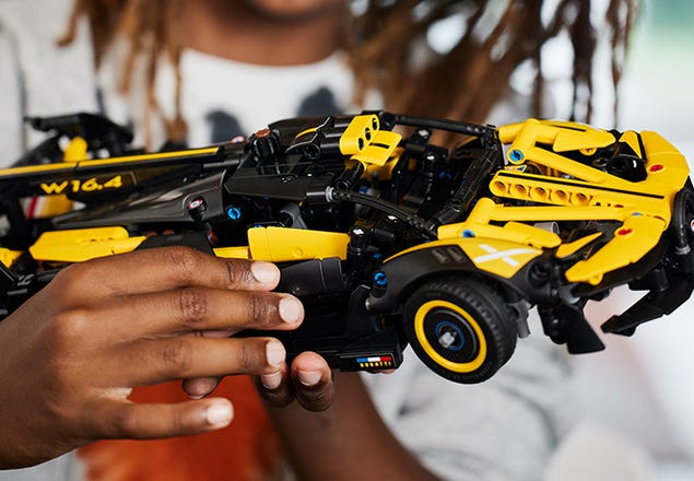 Inspire kids aged 9 and up to build their own race car model with this LEGO® Technic™ Bugatti Bolide (42151) toy set. They’ll enjoy a challenging project as they craft all the true-to-life details, including a working W16 engine, steering and scissor doors. The car’s stunning looks steal the show, with a yellow and black color scheme and authentic sticker details. After building and exploring the car, kids can display their collectible model with pride. A great introduction to engineering LEGO Technic buildable model sets feature realistic movement and mechanisms that introduce young LEGO builders to the universe of engineering in an approachable and realistic way. Let the LEGO Builder app guide you and your child on an easy and intuitive building adventure. Zoom in and rotate models in 3D, save sets and track your progress.