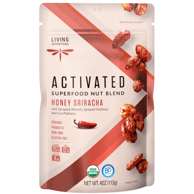 This Honey Sriracha Superfood Nut Blend brings the heat with a hint of sweet, along with the superfood goodness of sprouted almonds, hazelnuts, and enzymatically active raw honey in every bite. Living Intentions have also included 1 billion CFUs of friendly probiotic cultures in each bag to support immune health.*