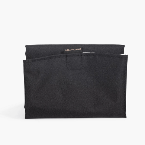 Logan and Lenora Change Pad folds up compact, and opens large enough for a toddler. Fold and secure one-handed with hidden magnetic closure. No more floppy unwieldy change pads in your bag!