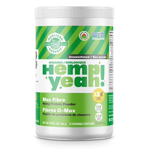 Want protein plus fibre? There are 15g of protein and 8gof fibre per 30g serving in this plant-based protein powder. Hemp Yeah! Balanced Protein + Fibre Protein Powder offers a bit of everything: protein, fibre, and omegas, in one nutritious package. Great for vegan diets, Hemp Yeah! Balanced Protein + Fibre Protein Powder is made with just one ingredient: hemp protein powder. Try blending with berries, a handful of spinach, and almond milk for a tasty treat!