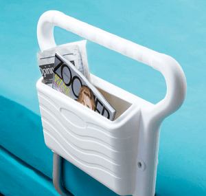 The MOBB EZ Grip Bed Rail has a plastic storage box on the side of the bed rail. It can be used as a magazine rack to store things you need at night, such as books and magazines. Also, the sides of the bed rails prevent the bed from falling. Along with this, you can use the molded plastic handle to get in and out of the bed. They are non-slip and comfortable to hold.