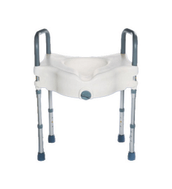 Ensure to use standard shower chair safety precautions, including ensuring: the shower is free of obstacles, that the chair is stable and adjusted to the appropriate height to ensure that both feet are on the ground, that the tub or shower basin has non-slip protection; that the person is seated centered on the chair (not on edge), and that the water temperature is comfortable.