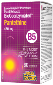 Natural Factors Pantethine is an innovative formula that provides 450 mg of the bioactive coenzyme form of vitamin B5 alongside Farm Fresh Factors, a bioenergetic blend of phytonutrients, for direct support of lipid metabolism and to help lower total and LDL cholesterol levels. Upgrade your standard supplement to this non-GMO advanced form of vitamin B and feel the difference!*