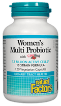 Women’s Multi Probiotic by Natural Factors is a source of probiotics providing live microorganisms to enhance intestinal, vaginal, and urinary tract flora. It provides antioxidants and prevents recurrent urinary tract infections in women. A guaranteed minimum 12 billion active cells of 10 strains of probiotics are blended with CranRich cranberry concentrate to maintain healthy digestive and urinary systems.*