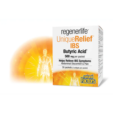 Natural Factors Unique Relief IBS Butyric Acid 30 Packets 60 Softgels
