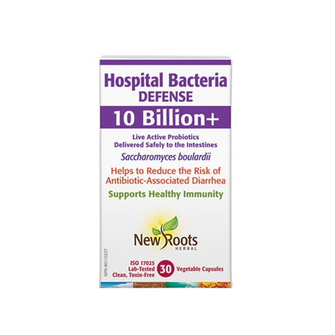Travelling or in a healthcare setting? Give your gut some extra TLC with New Roots Herbal Hospital Bacteria Defense. This targeted formula packs 10 billion live cells of Saccharomyces boulardii, a friendly yeast strain, into every capsule. Saccharomyces boulardii battles against unfriendly bacteria that can sometimes take hold during antibiotic use. By introducing this beneficial yeast, Hospital Bacteria Defense helps reduce the risk of antibiotic-associated diarrhea, a common side effect.