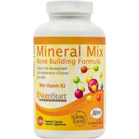 NutriStart Bone Building Mineral Mix uses coral calcium, which contains over 70 trace minerals, mineral-citrates and mineral compounds, including Chromemate , SelenoExcell. Mineral Mix potentially to rebuild bones and teeth.* In fact excessive calcium is now linked to heart disease in menopausal women, and the best we can hope to do with calcium supplementation is to forbid further withdrawal from the bone mass.* But, certain compounds will channel calcium, and other necessary minerals, back into the skeletal structure, actually allowing for a rebuilding of bones and teeth.* These include boron, silica and vitamin K2, all of which are present in Mineral Mix.
